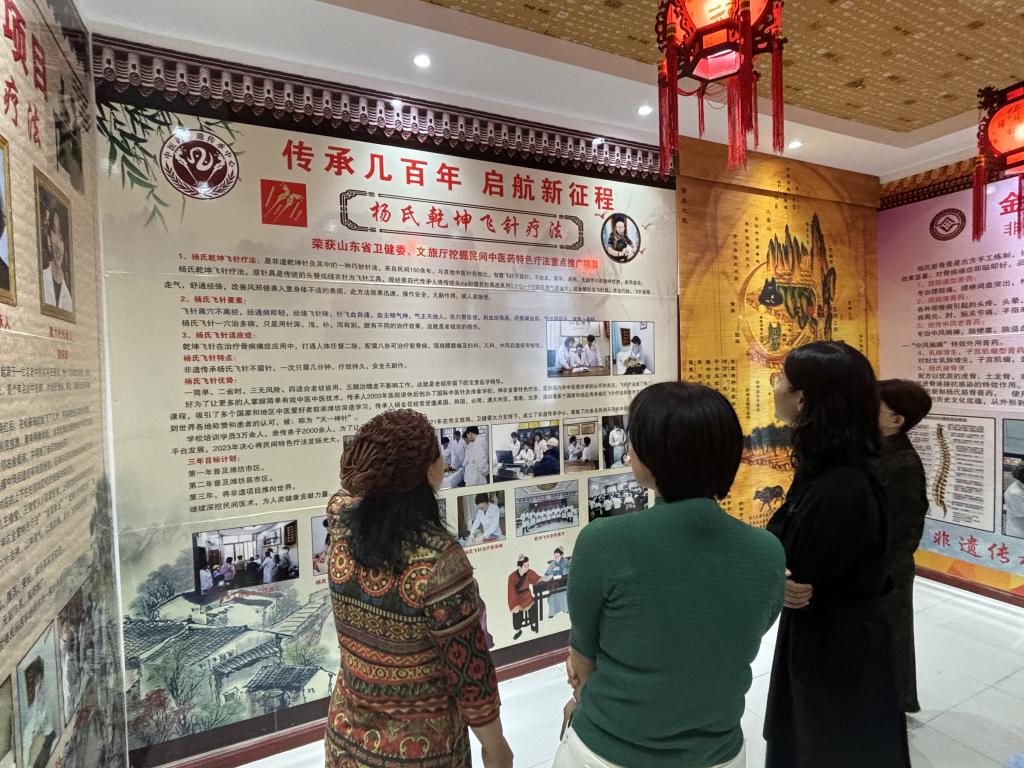 在参观过程中,王红主任还详细介绍了中医药非遗项目的特色疗法、独特技艺以及在现代医疗中的应用价值。例如金掌脉法、乾坤针灸中医疗法,尤其着重介绍了杨金花医师的独特针法——杨氏飞针,作为中医药领域的一颗璀璨明珠,承载着深厚的历史底蕴与精湛的医术传承。它以其独特的针法和神奇的疗效,受到大众的广泛喜爱。