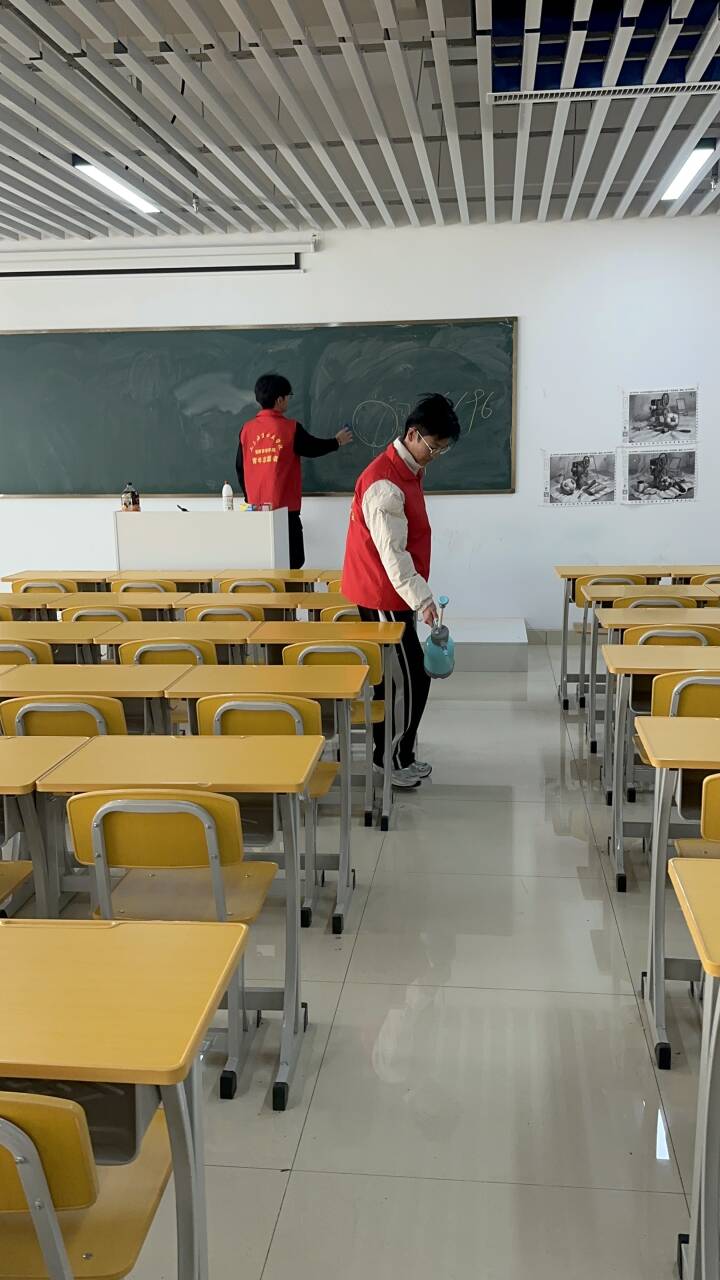 冬季来临,为保障广大师生在安全,卫生的环境中学习与生活,金年会jinnianhuicom开展了定期的教室和宿舍消毒工作,本次活动由活动负责人戴和平带领十名志愿者在11月6日对教师和宿舍展开了全面细致的卫生消毒工作。