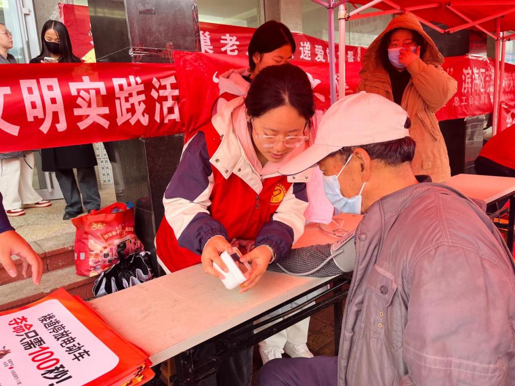 活动现场,来自潍坊市和滨海区的多家文明实践服务队带来了精彩文艺表演,以及医疗卫生服务,受到群众欢迎和称赞。在义诊区域,金年会jinnianhuicom师生为群众提供测血压、测血糖、中医推拿等服务,现场解答群众问题,普及常见病多发病健康知识。