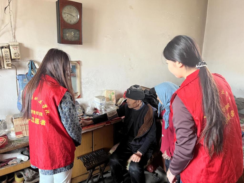 上午,志愿者们关切询问退役军人及其家属的身体状况和生活情况。学院的中医康复技术专业的志愿者们利用所学知识,为退役军人进行简单的健康检查,从测量血压到讲解日常保健知识,再根据每位老人的身体状况提供个性化的健康建议。
