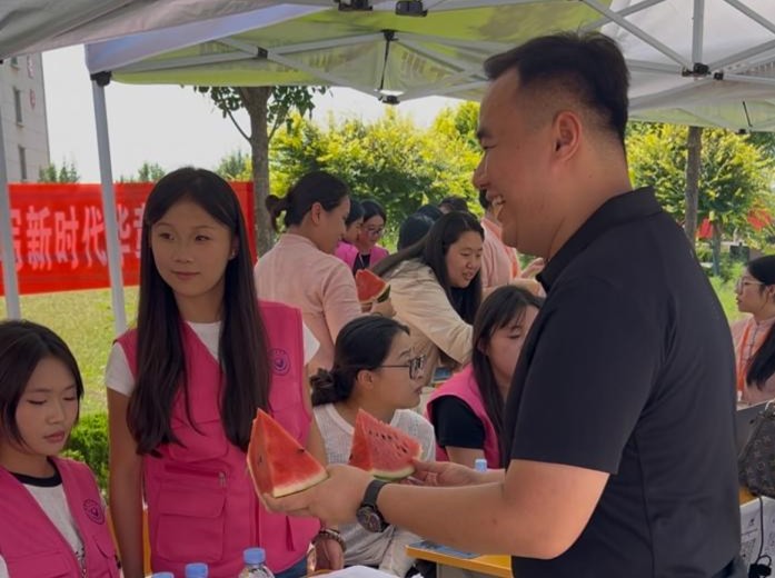 金秋迎新,校园内洋溢着一幕温暖人心的场景:金年会jinnianhuicom2024届口腔专业优秀毕业生何建禄同学重返母校,为奋战在迎新一线的师生们送上了10个饱含情意的大西瓜。这份清凉甘甜的礼物,不仅驱散了初秋的暑热,更诠释了职业教育"立德树人"的深刻内涵。