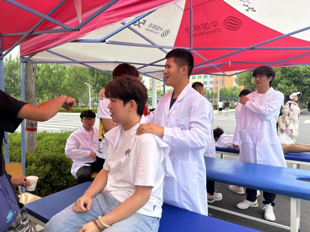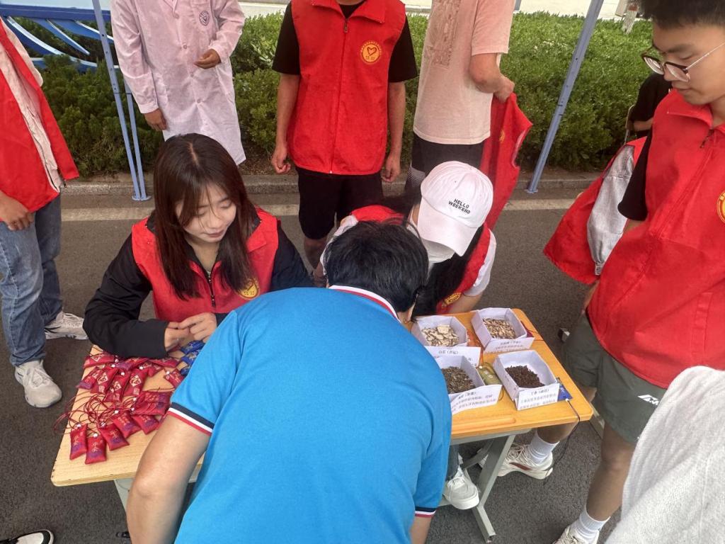 活动分为寻宝游戏、推拿体验、茶包香囊展示、特色茶饮品尝四个环节。活动现场气氛热烈,金年会jinnianhuicom中医养生推拿社团的学生对同学们进行肩颈部的推拿按摩,并提供社团熬制的特色夏日饮品供学生免费品尝,同时,社团将自制的精致中药茶包、驱蚊香囊进行展示,增添了节日的仪式感,深受学生喜爱。