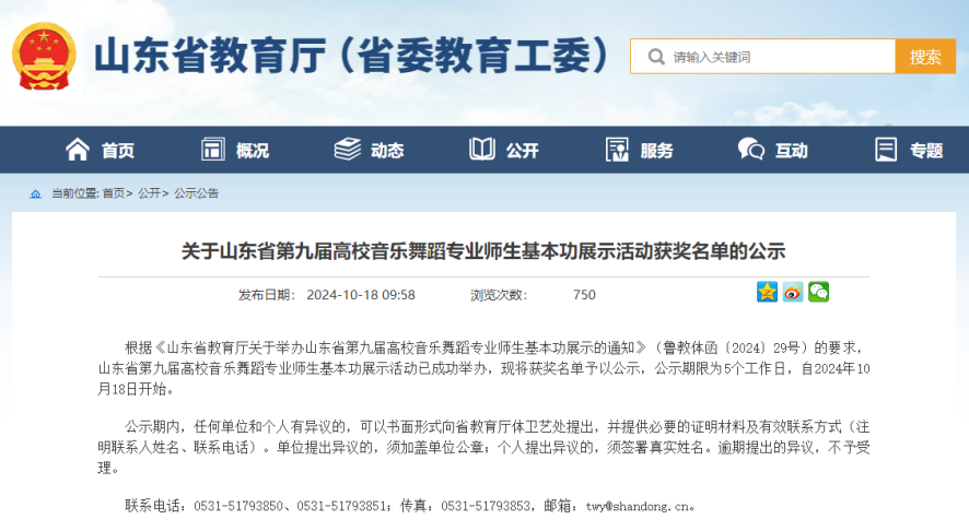 山东省高校音乐舞蹈专业师生基本功展示活动每三年一届,旨在展示新时代高校音乐舞蹈专业师生的综合素质、专业水平和创新实践能力。此次大赛汇集了全省1456名高校优秀师生参加展示活动。大赛分微课及技能展示两部分,徐华梅教师在展示活动中以高超的技艺和深厚的功底,赢得了现场观众和评委的高度赞誉,最终获得一等奖的优异成绩。